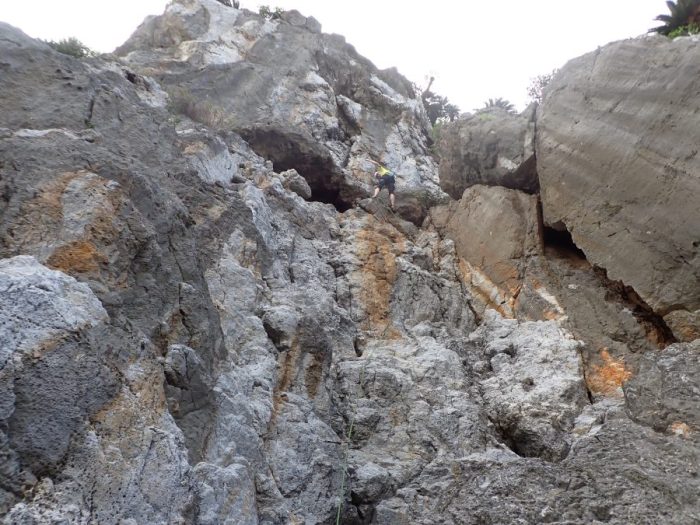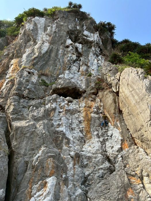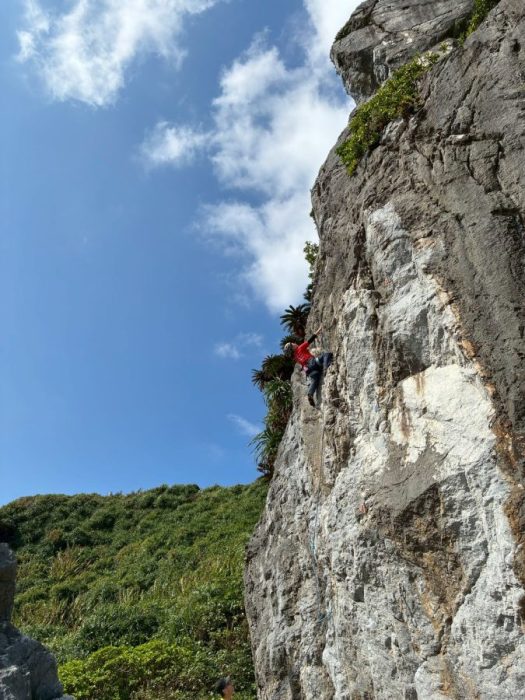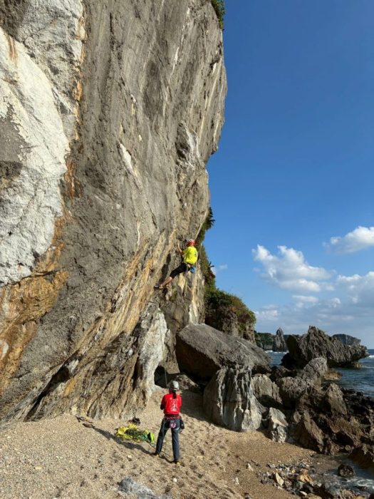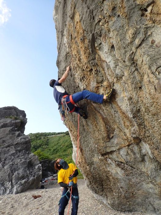 それにしても辺戸岬宇佐浜の岩場は砂浜のすぐ脇に岩場があるような場所でとても居心地がよかったです。移動も楽なので交代で目標とするルートに取りつきます。