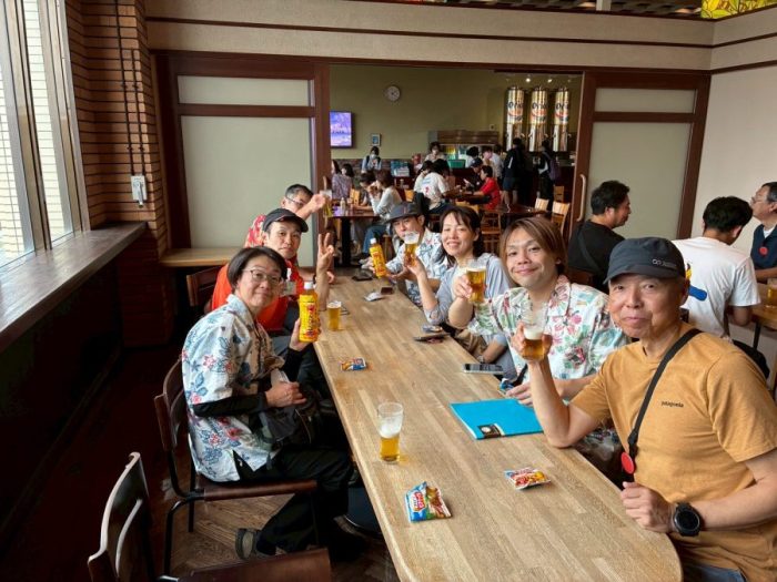 という訳で、ツアーの最後に試飲タイムです。今回は定番の「オリオン・ザ・ドラフト」と11月にできたばかりの「オリオンいちばん桜」をいただきました。香り付に沖縄の桜を使ってあるのだとか。