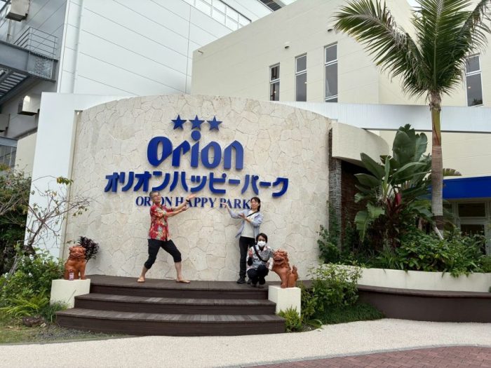 昼食後は高速に乗り本日の目的地、オリオンハッピーパークへ向かいます。高速道路沿いに目をやると沖縄のなだらかな丘陵地帯が連なっていました。シダやツル状の植生が多く、ここが本州ではないことを感じさせます。このあたりの山は登れるのでしょうか。そんなことを考えながら那覇市内から約1時間と少しでオリオンハッピーパーク(オリオンビール名護工場)へ到着しました。
