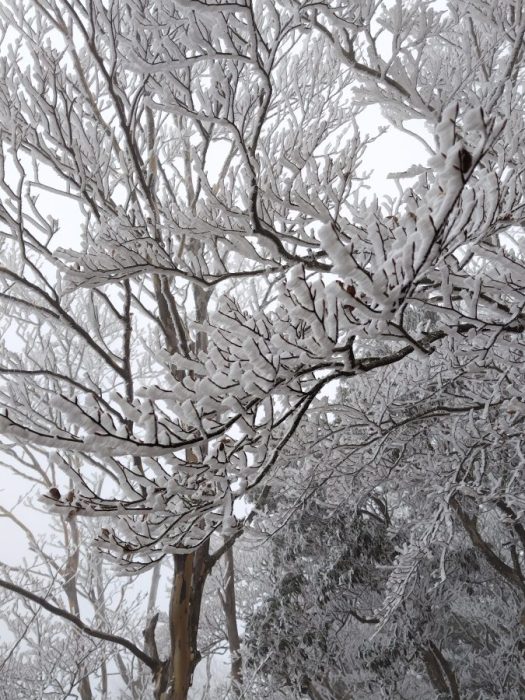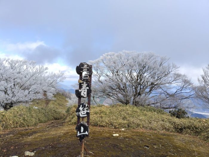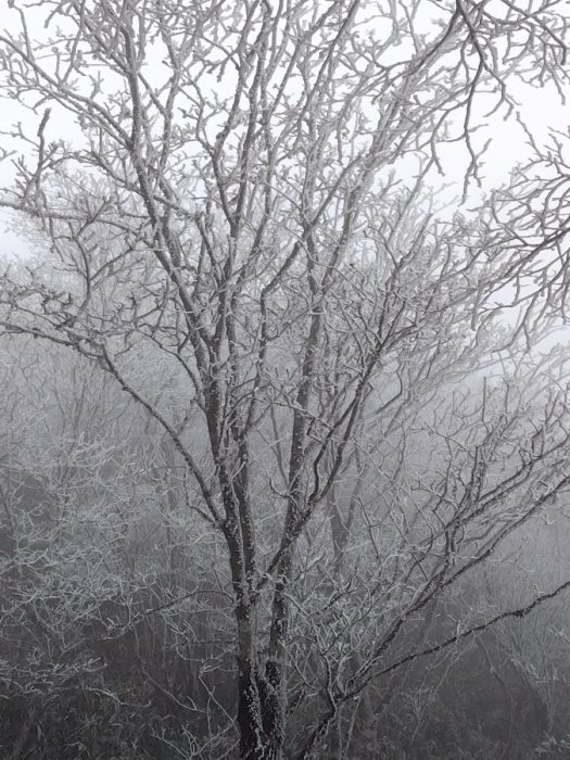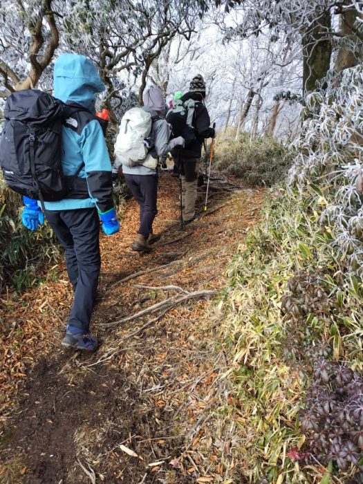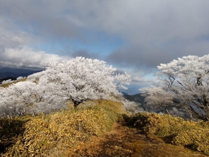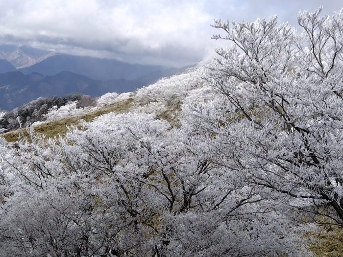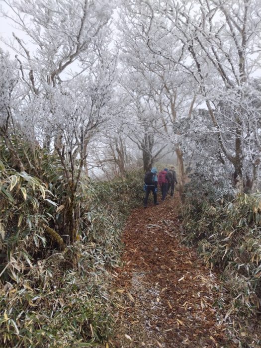 無名ノ峰に続く尾根を登っていると霧氷が出てきた。きれい!幻想的!