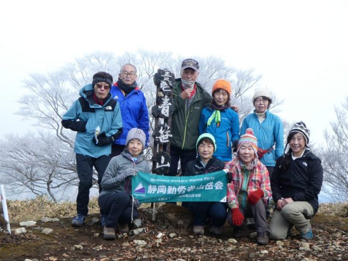 青笹山到着。風は無し。来たときは曇りだったが昼食を食べていたら少し青い空が顔を出した。青笹山から見える景色は、まるで桜が咲いているよう。