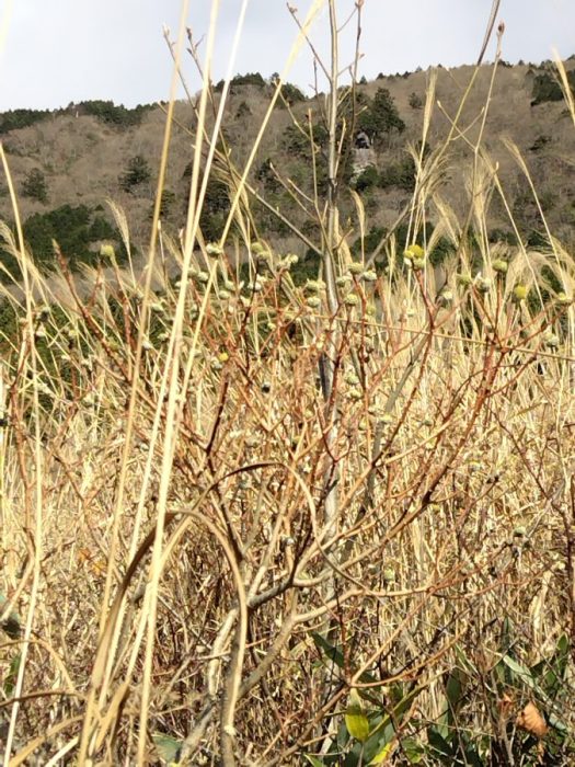 有東木のワサビ田 ミツマタのつぼみを見ながら葵高原に戻ってきた。お疲れ!