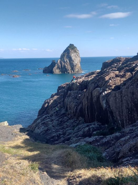 お昼ごろに到着予定でしたが予想以上に順調に進みお昼前には目的地、徳島県美波町日和佐に到着しました。風光明媚な地方の観光地といった趣ですがかつては四国霊場薬王寺の門前町として栄えたのでしょうか、お遍路さんの姿もちらほら見かけました。道の駅で昼食休憩を取りその後、今回最初の目的地「日和佐の岩場」に向かいました。