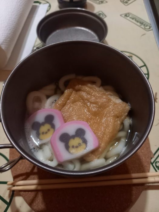 ミッキーのかまぼこを添えた「正月うどん」