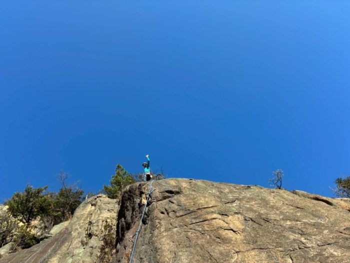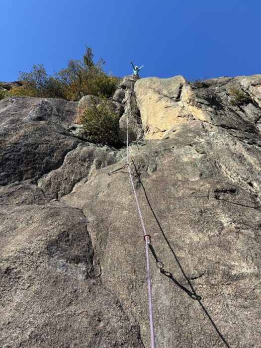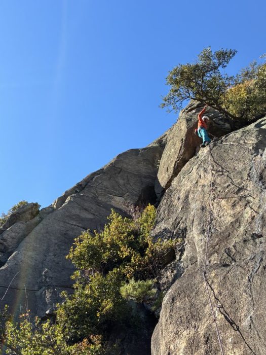 さて、私がこの旅の最後に選んだルートは「パラグラフ」です。30mを2Pで登るルートですがトポには1Pで登るととても良い、と書いてあります。2P目に入るとピン間が遠く緊張しましたが無事OS成功。この旅の〆としました。