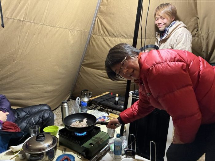 その後キャンプ場に戻りいつものようにテントの中で食事をしました。