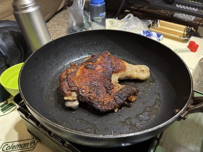 こんがり焼けた「骨付き鶏」の出来上がり