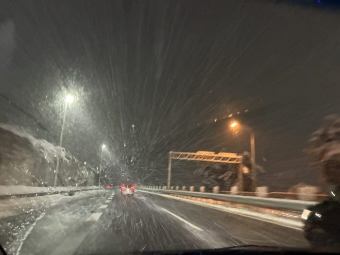 雪と渋滞の名神道