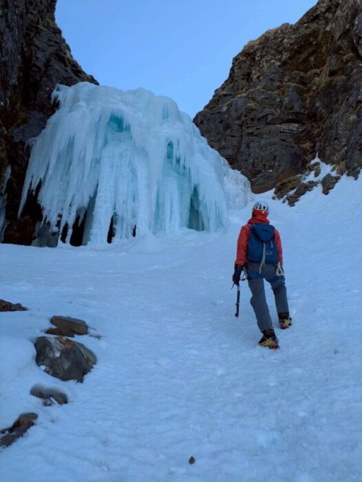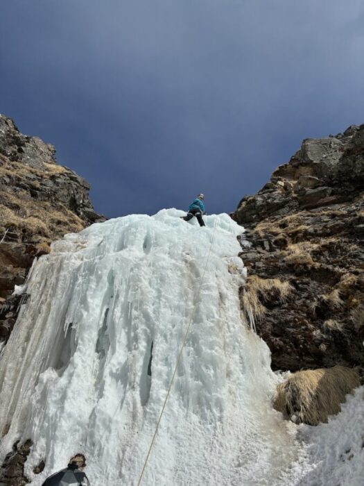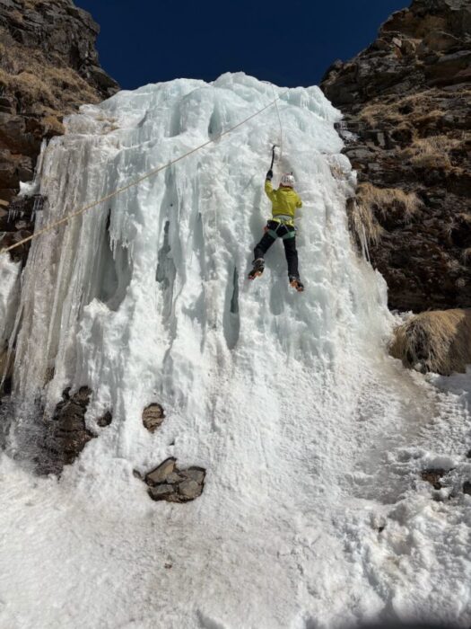 ▲今シーズンからアイスクライミングを始めた8束さん。まだ慣れない感じですけど頑張って!