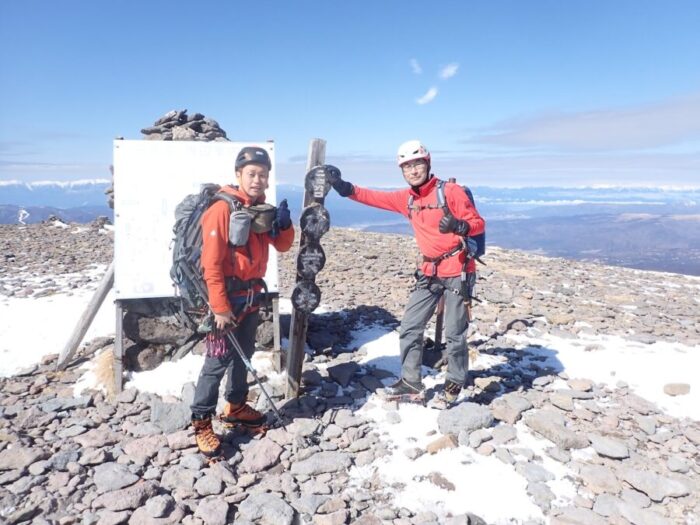 ▲硫黄岳山頂で記念撮影。