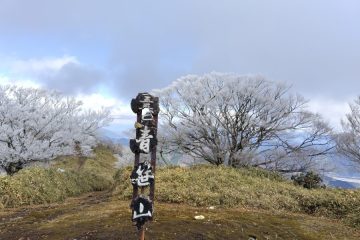 真富士の里に7:30集合して葵高原駐車場から風穴ルートを進みます。天気は曇り、夕方から降りそう。 ワサビ田を抜けてコケコケの森を歩いて行きます。 無名ノ峰に続く尾根を登っていると霧氷が出てきた。き…